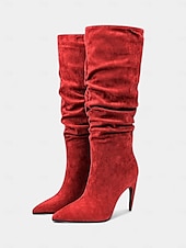 More information about Women's Green Velvet Slouch Knee High Boots - Pointed Toe Stiletto Heels for Party, Night Out & Holiday Glam Looks
