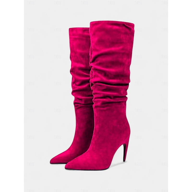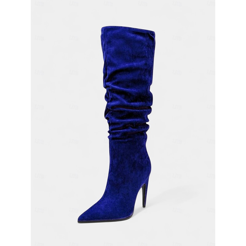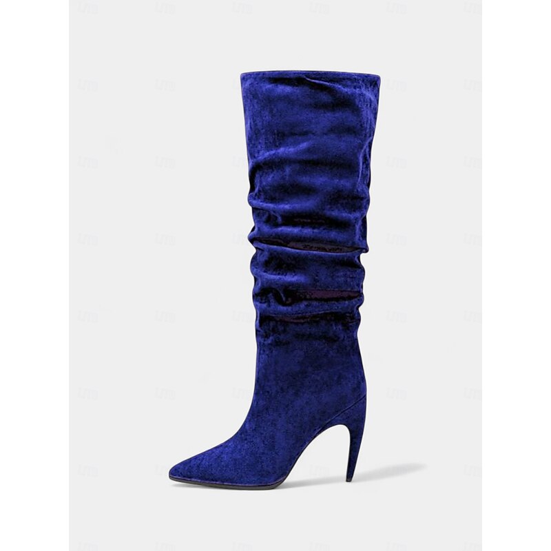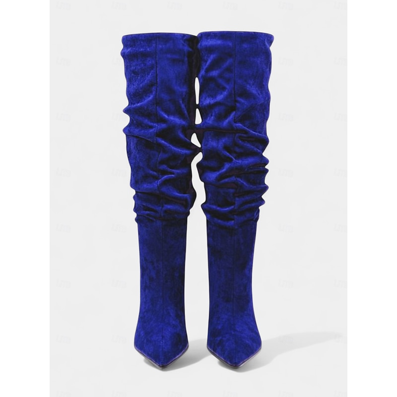 Women's Green Velvet Slouch Knee High Boots - Pointed Toe Stiletto Heels for Party, Night Out & Holiday Glam Looks 17