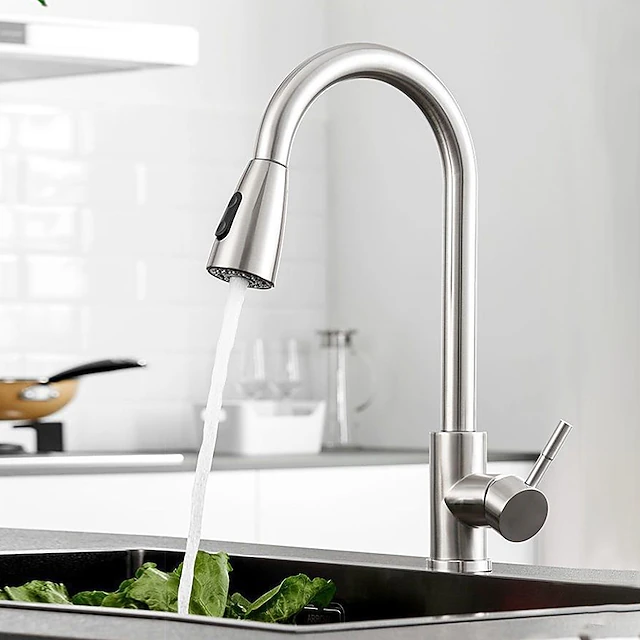 Kitchen Faucet with Pull-out Spray,Single Handle One Hole Stainless Steel Pull-out / Pull-down / Standard Spout / Tall / High Arc Centerset Minimalist / Modern Contemporary Kitchen Taps 7