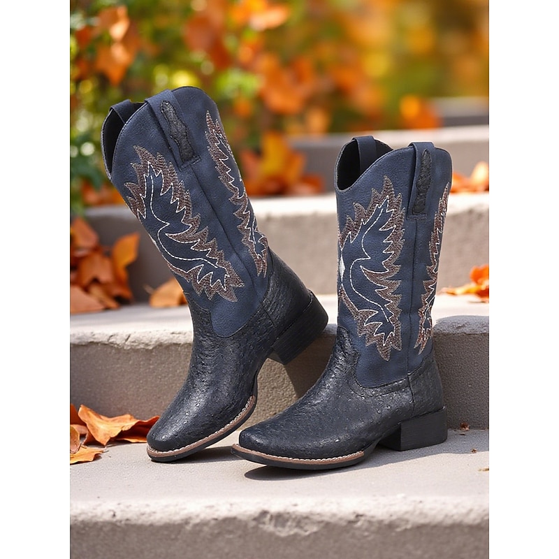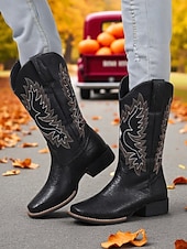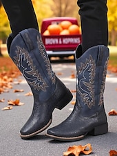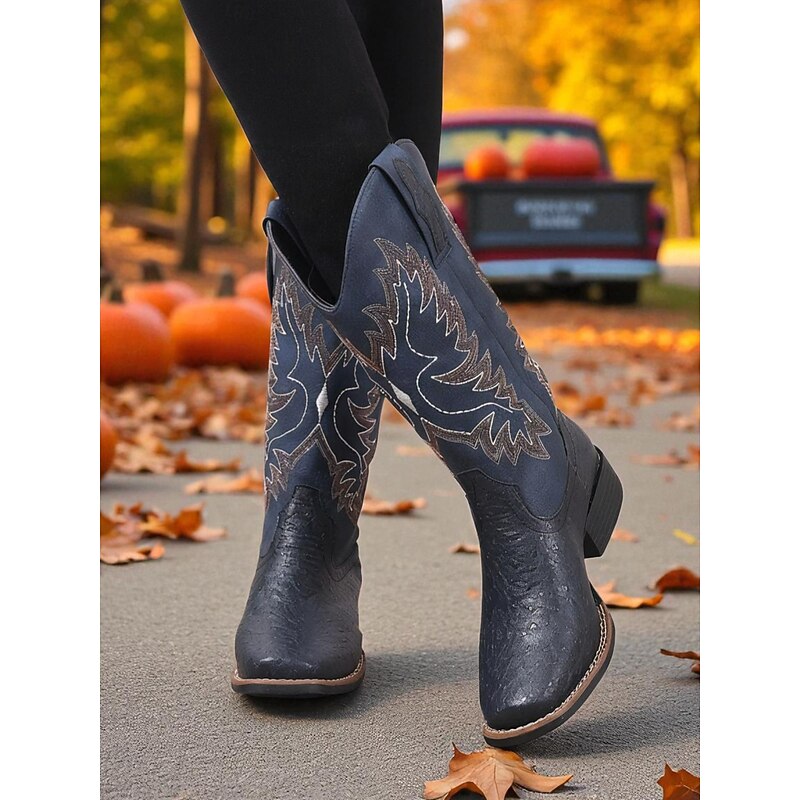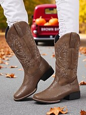 More information about Women's Brown Embroidered Cowboy Boots – Classic Western Style Mid-Calf Boots for Fall Festivals, Farm Work and Country Concerts