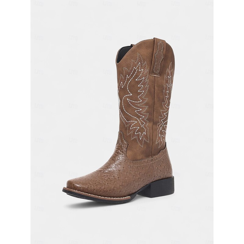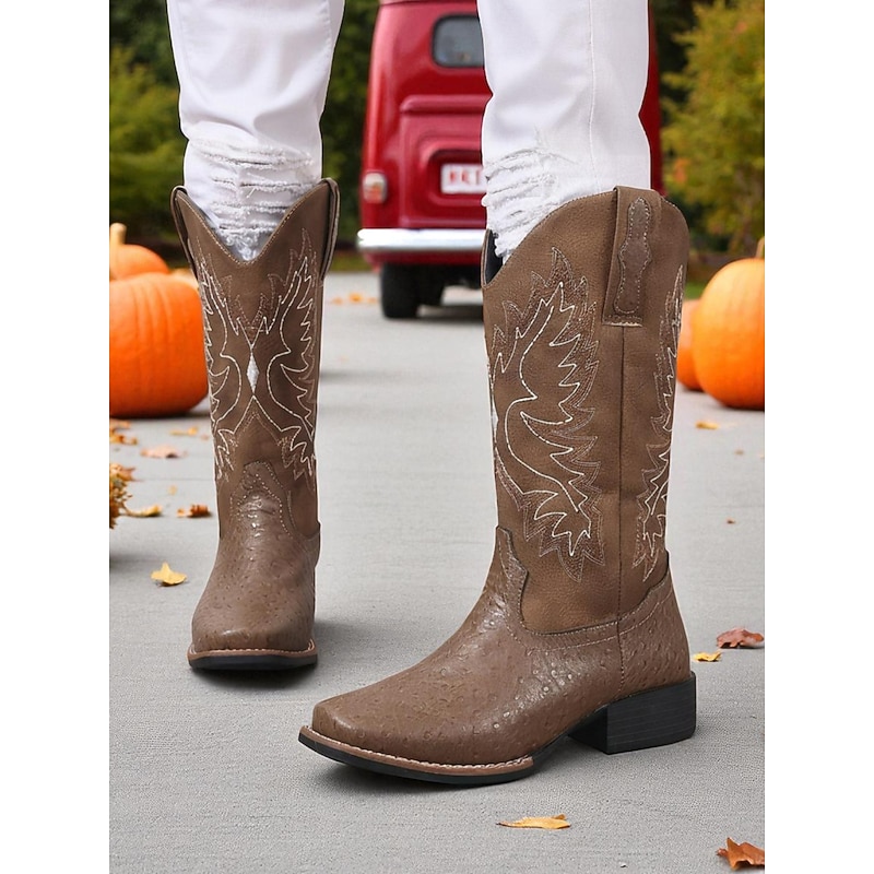 Women's Brown Embroidered Cowboy Boots – Classic Western Style Mid-Calf Boots for Fall Festivals, Farm Work and Country Concerts 1