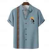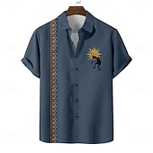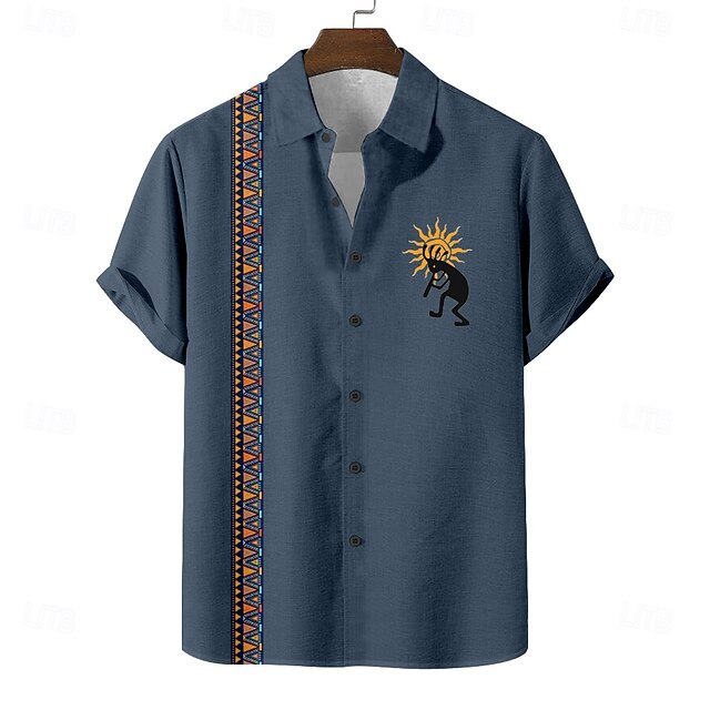 More information about Men's Geometric Ethnic Kokopelli Shirt Summer Shirt Button Up Shirt Short Sleeve Vintage Retro Holiday Casual Daily Summer Spring Turndown 3D Print Linen Like Shirt Blue Green Khaki Dark Blue