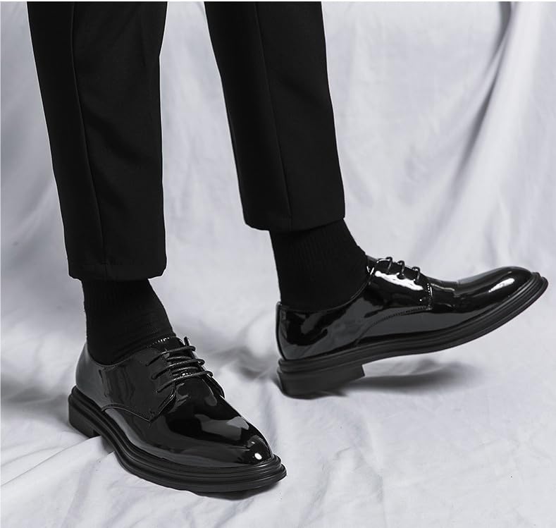 Men's Lace-Up Pointed Toe Business Formal Shoes British Style Black Derby Shoes Casual Oxford Shoes for Wedding