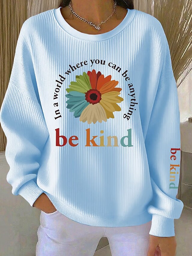 HOT ! Women's Sweatshirts Graphic Letter Vintage Casual Long Sleeve Crew Neck Regular Tops Street Dailywear Casual Print White Yellow Pink Blue Spring Fall Winter