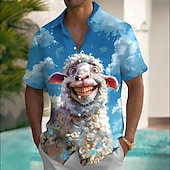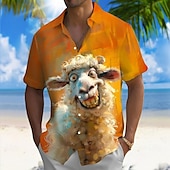More information about Men's Animal Sheep Funny Summer Hawaiian Shirt Button Up Shirt Aloha Shirt Short Sleeve Hawaiian Holiday Beach Wear Summer Spring Turndown 3D Print Collared Shirts Front One Pocket Blue Orange Dark