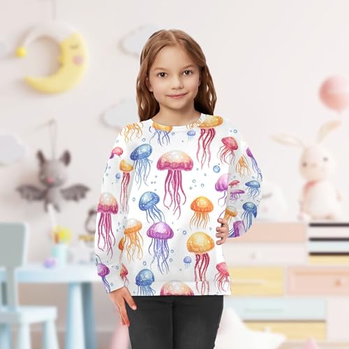 JUNZAN Funny Jellyfish White Little Kids Hoodie Sweatshirt Crewneck Sweatshirts for Boys Sports 4T 5