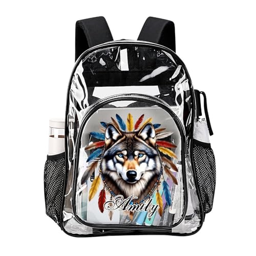 Custom Tribal Wolf Clear Backpack with Name Personalized Transparent Bookbag for Boys Girls PVC Waterproof Backpack Large Capacity Back to School Gifts 1