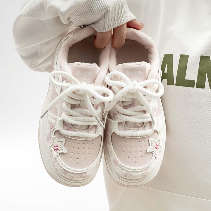 • Cute Plush Pink Stars: Adorable, plush pink stars add a playful and stylish touch, making these sneakers a standout choice for any casual outfit.