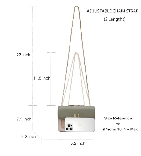 • 3-WAY VERSATILITY FOR ALL OCCASIONS: Easily shifts between Handbag, ​​Shoulder bag​​ (short folded chain), ​​Crossbody​​ (extended chain), ​​7.9 x 5.2 x 3.2 inch​​ compact size transitions from work to weekend leisure and evening gatherings. suitable for any occasion. It's an excellent present for Birthdays, Anniversaries, Mother's Day, Christmas, and other special occasions. Delight your loved ones with this perfect blend of style and functionality.