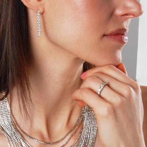 • STYLISH DESIGN - Simple and elegant, these silver dangle earrings for women make a classic fashion statement and can be worn casually or as a finishing touch for formal and special occasion looks. Hanging from a hypoallergenic stud post, these rhinestone long earrings beautifully shimmer in the light.