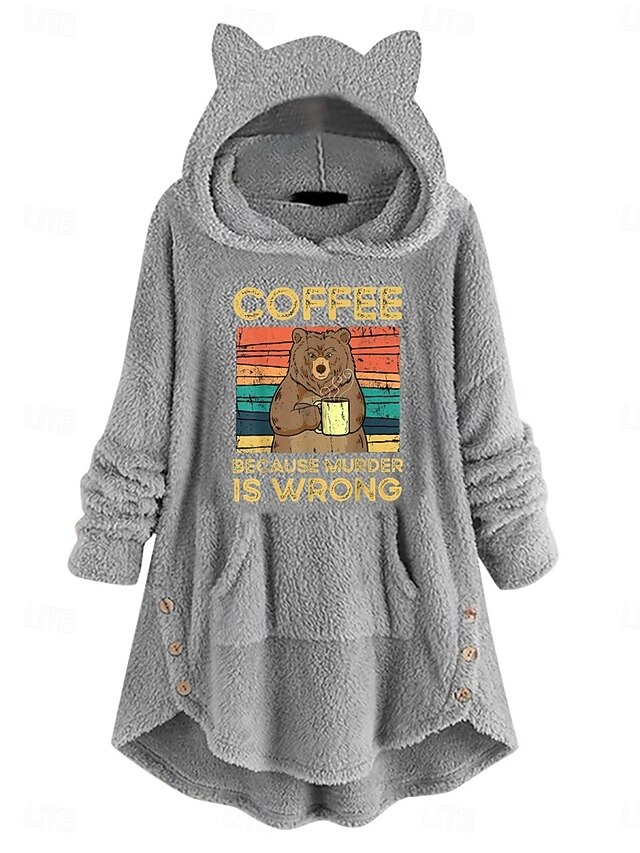 More information about Women's Pullover Hoodie Sweatshirt Animal Letter Casual Long Sleeve Hooded Long Tops Street Dailywear Casual Pink Wine Gray Fall Winter