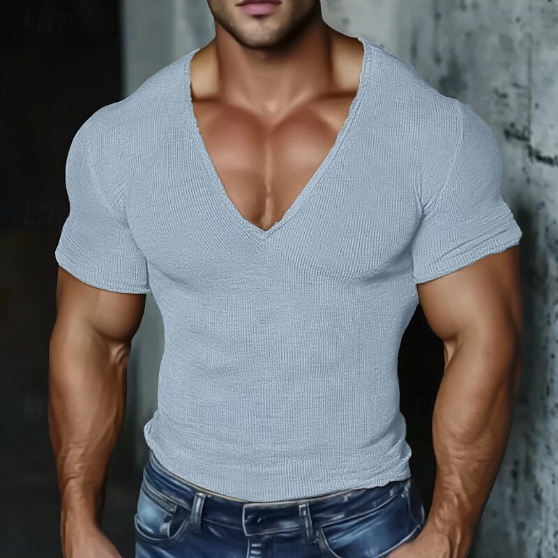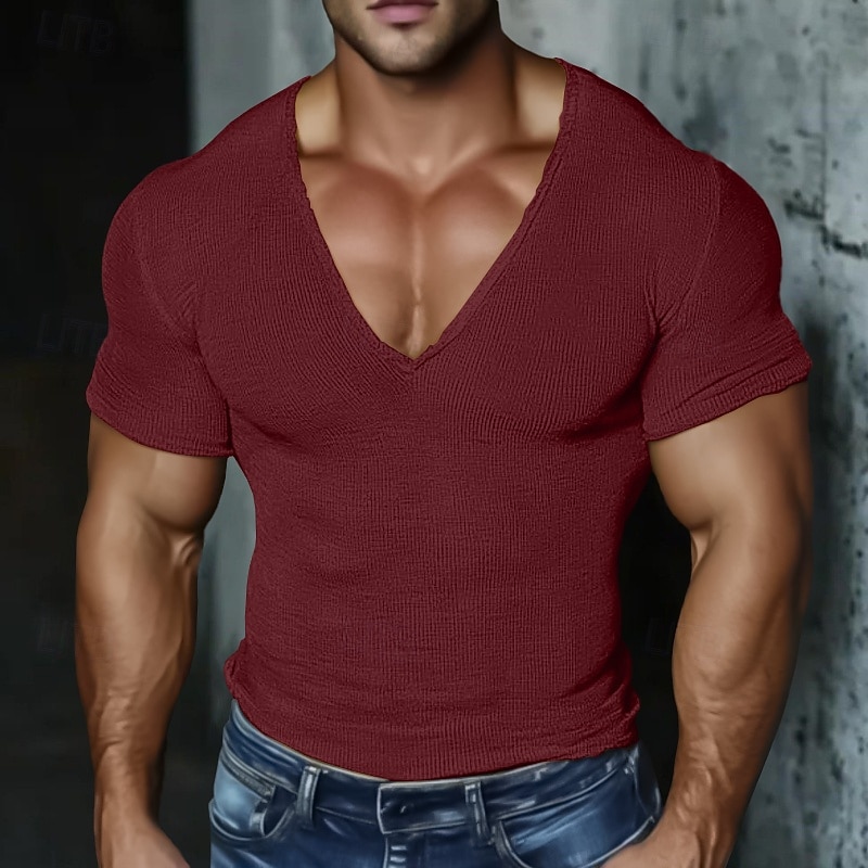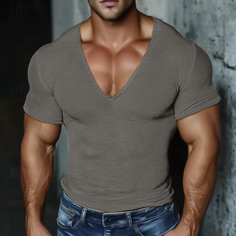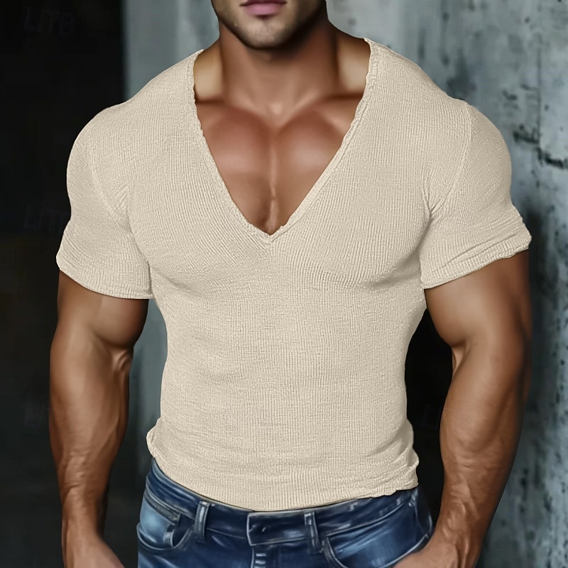More information about Men's Knit Tee Tee Top Cotton Blend T-Shirt Short Sleeve V Neck Summer Solid Color Fashion Designer Basic Knitted Vacation Street Casual Yellow Beige Light Blue Top Tee for Men