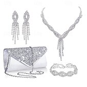 More information about Light Luxury Dinner Handheld Bag Women's Premium Bag Bride Necklace Earrings Bracelet Tassel 4 Piece Jewelry Set