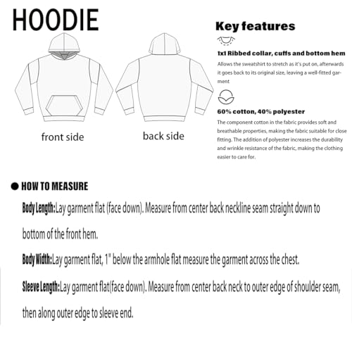 • Fabric Material:This hoodie is made of 60% cotton and 40% polyester.The fabric of this long sleeve sweatshirt is skin-friendly, soft, comfortable, and wear-resistant. The pattern is printed with high quality and will not fall off easily