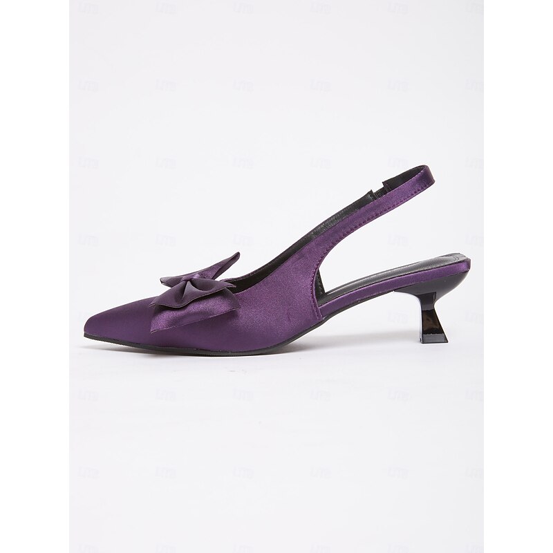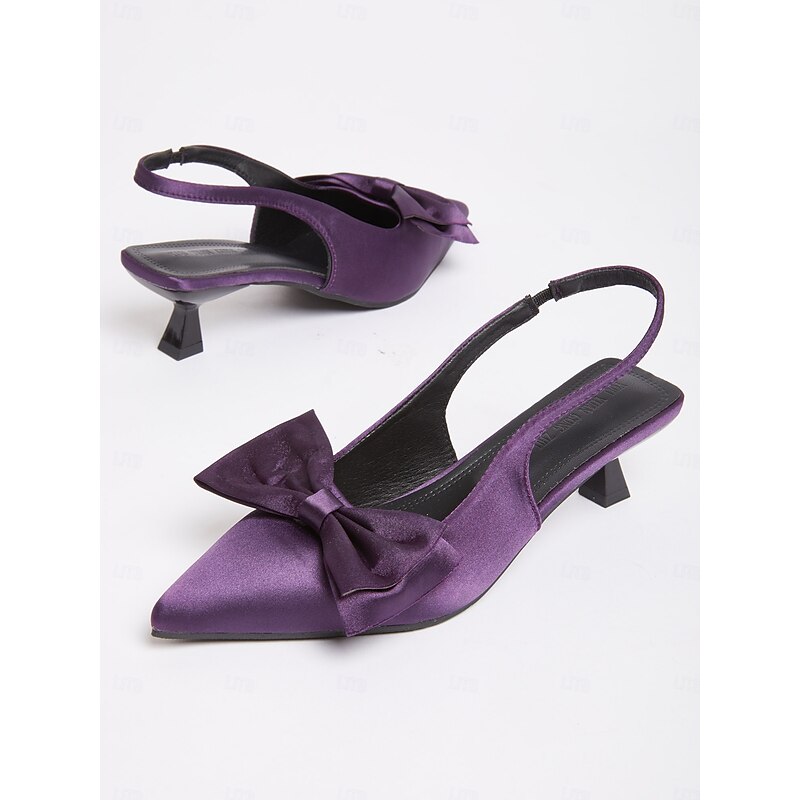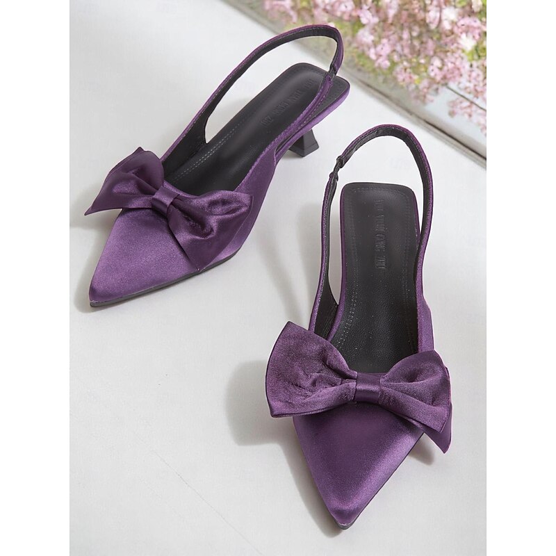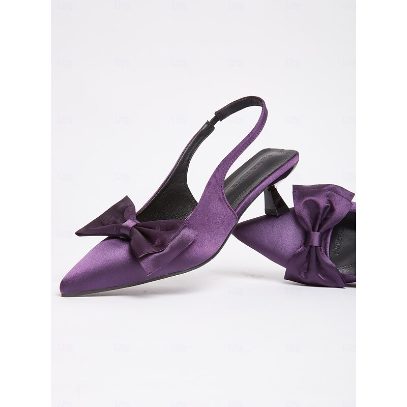 HOT ! Women's Purple Satin Bow Pointed Toe Slingback Heels – 1950s Elegant Vintage Style Shoes for Parties, Weddings, and Formal Occasions