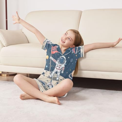 ALAZA Cute Astronaut Solar System Hello World Space Satin Pajamas Set Short Sleeve Button Down Sleepwear Summer Pjs 2 Piece 7