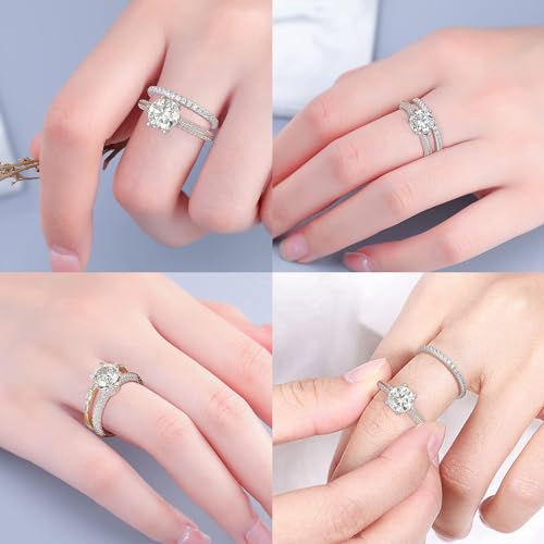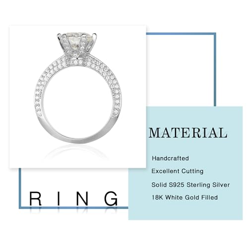 HOT ! MOOSEA 2ct Moissanite Rings for Women, D Color VVS1 Clarity Lab Created Moissanite Rings 18K White Gold Vermeil 6 Prong Round Solitaire Knife Edge Moissanite Engagement Rings for Women Size 4-11