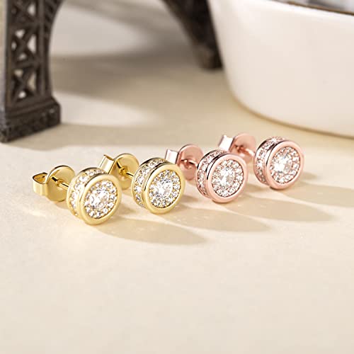• Hypoallergenic Earrings - The diamond stud earrings for women are made of 18K gold plated, and the gold stud earrings are surrounded by some small cubic diamonds. Three-dimensional inlay, three-dimensional cutting, solid and not easy to fall off. Quality and fashion coexist: let you have a diamond-like brilliance and give your skin a noble experience.