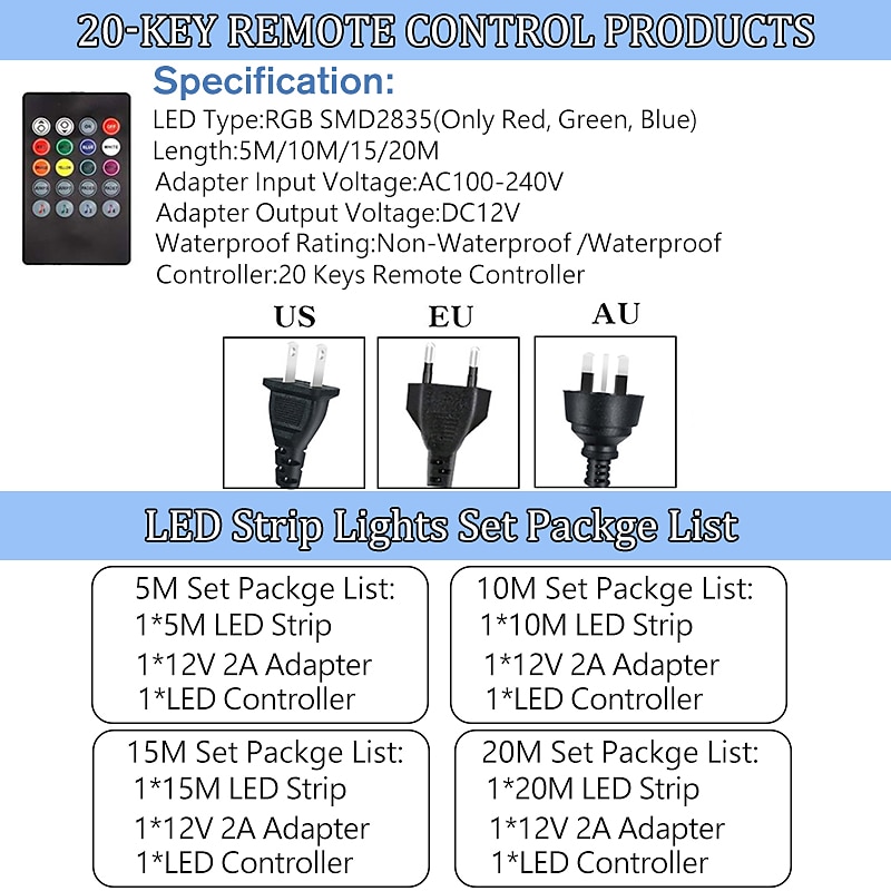 $46.99 - LED Strip Lights 20M Bluetooth DIY Color Changing 2835 RGB Kit with Hidden Controller and Remote – Easy Installation 5M 10M 15M for TV Backlight, Room and Bedroom Decor 2025. Shop for cheap Remote Control online? Buy at lightinthebox.com on sale today!