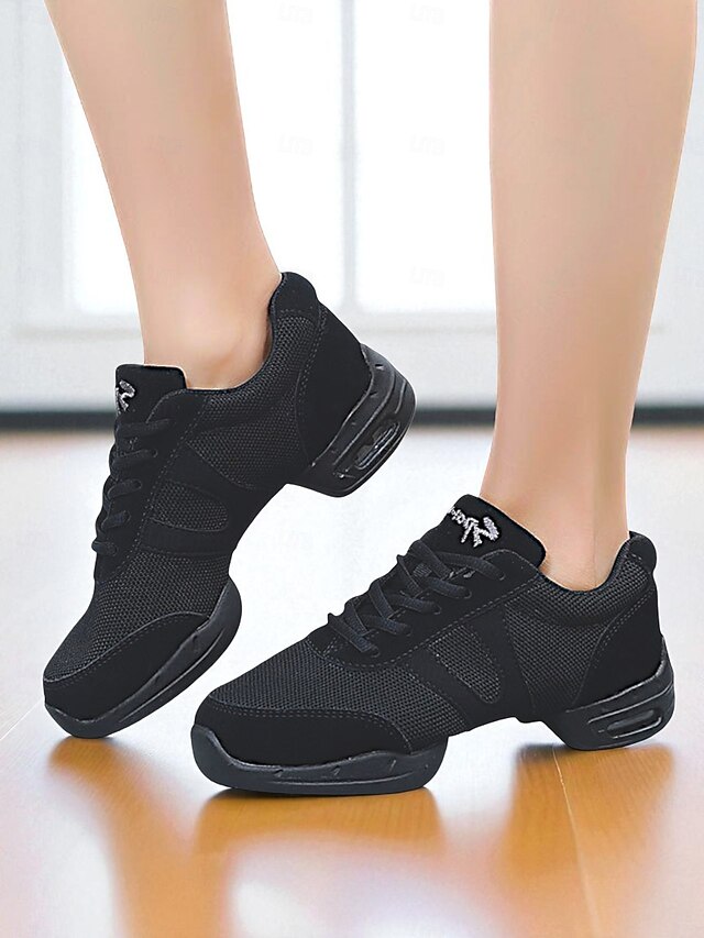 Women's Black Mesh Jazz Dance Sneakers - Lightweight Breathable Professional Practice Shoes for Latin, Hip Hop and Ballroom 1