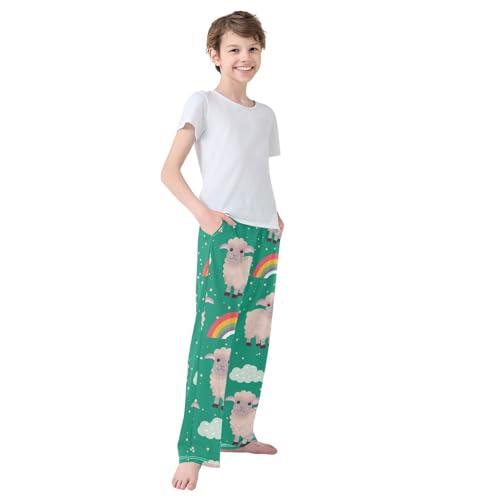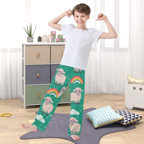 Lamb Rainbow Boys Pants Boys Athletic Pants Long Pant for Boywith Pockets Wide-Leg Size 6-14Y 6