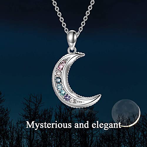 AOBOCO Sterling Silver Crescent Moon Necklace for Women, Gorgeous Multicolor Moon Pendant Embellished with Crystals from Austria, Anniversary Birthday Moon Jewelry Gifts for Lovely Ladies 1