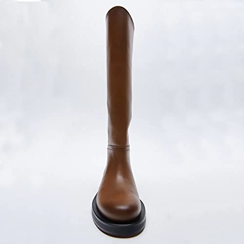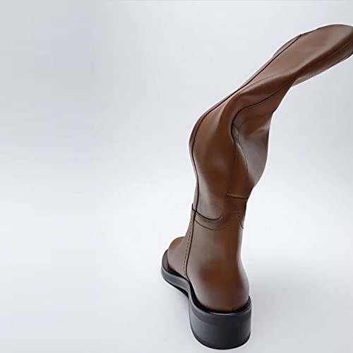keleimusi Women's Knee High Leather Riding Boots Comfortable Pull On Round Toe Low Block Heeled Shoes for Ladies 5
