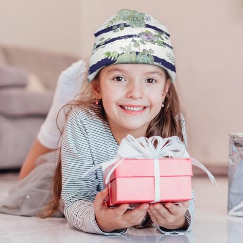 Colorful Succulent on Stripe Kids Beanie Hat for for Girls Boys Children Cap Winter Knitted Chemo Cancer Headwear Accessories Gifts Decoration 5
