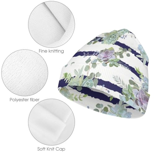 Colorful Succulent on Stripe Kids Beanie Hat for for Girls Boys Children Cap Winter Knitted Chemo Cancer Headwear Accessories Gifts Decoration 4