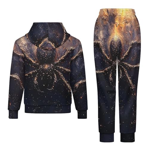 HOT ! Boy's Girl's 2 Piece Outfits Graphic Sweatshirt Kid Long Sleeve Hoodie Set, Dark Spider Galaxy Universe