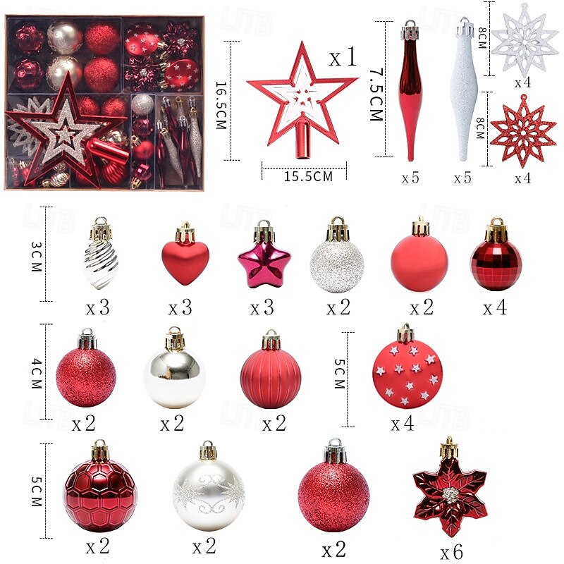 $36.99 - 58 pcs Christmas Tree Balls Baubles Ornaments, Xmas Decoration, Painted Christmas Ball Hanging Set, Festive Holiday Tree Decor 2025. Shop for cheap Ornaments online? Buy at lightinthebox.com on sale today!