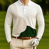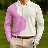 More information about Men's Color Block Polo Long Sleeve Polo Shirts Lapel Casual Outdoor Athleisure Daily Wear 3D Print Buttons Spring Fall Winter White Pink Green
