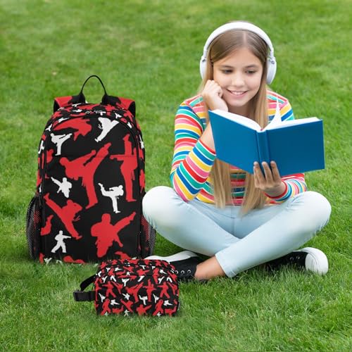 Martial Arts Pattern Backpack Set for Kids Girls Boys Elementary Middle School Bags with Lunch Bag 1