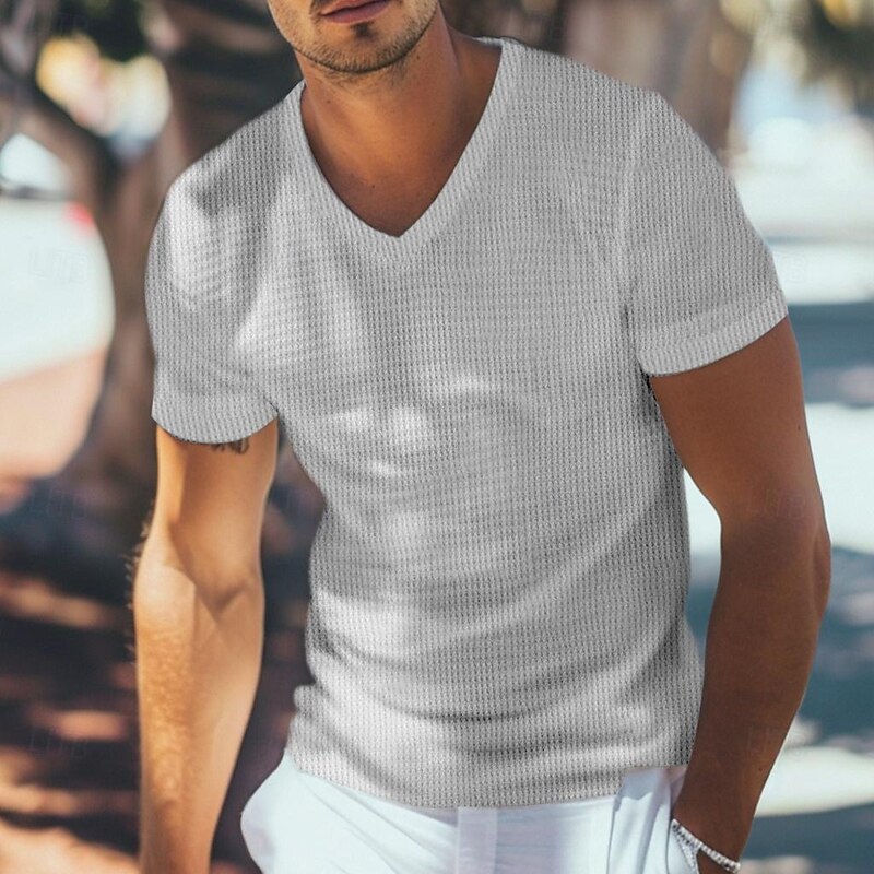 Men's Waffle Henley Shirt Tee Top Short Sleeve V Neck Summer Solid Color Fashion Designer Comfortable Buttons Outdoor Casual Daily White khaki Top Tee for Men
