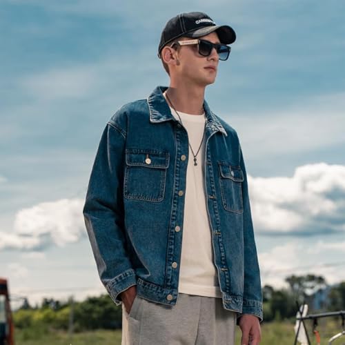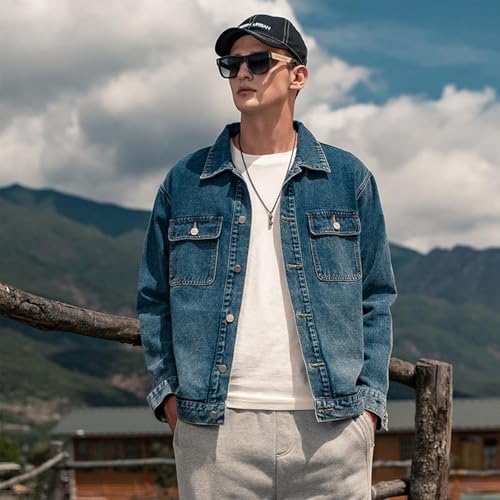 Men's Denim Jacket,Classic Crewneck Cowboy Jacket for Men,Spring and Autumn Vintage Workwear Denim Shirt 6