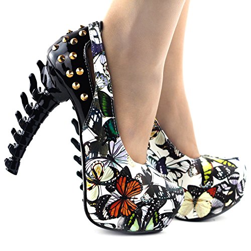 SHOW STORY Rock Butterfly Stud Cut-Out Peep-Toe Platform Bone Heel Pumps,LF80626 2