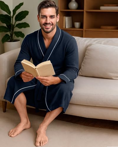 • Men's Robes - Crafted from a high-quality cotton blend fabric, provide exceptional comfort and expert craftsmanship. Designed to be neither too thick nor too thin, these robes feature double-stitched seams for durability while remaining soft, cozy, and lightweight for ultimate relaxation.