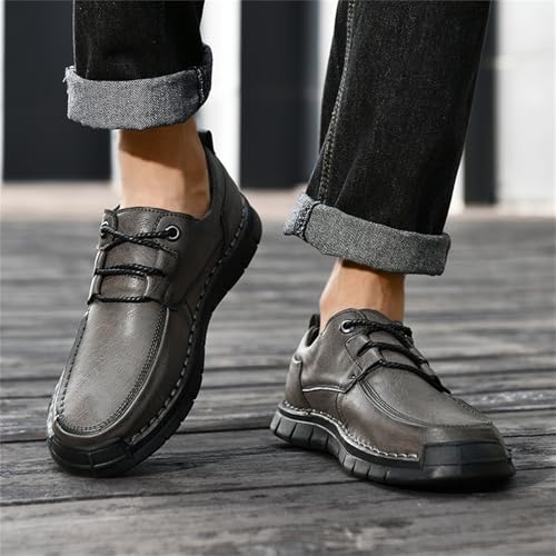 Men's Hademade Genuine Leather Lace Up Casual Flats Loafer Shoes Lightweight Soft Sole Breathable Comfortable Business Non-Slip Oxford Boat Shoes for Walking Hiking Driving Work 7
