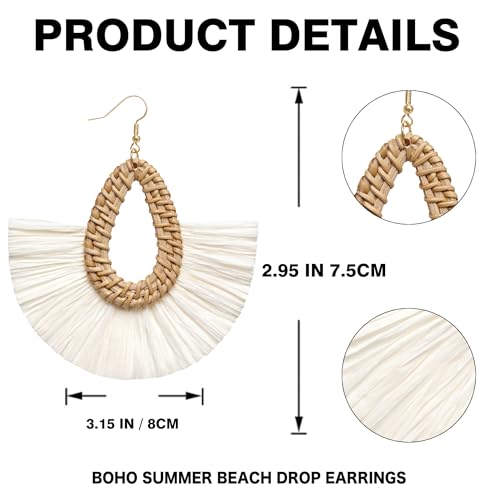 Statement Raffia Tassel Earrings Boho Summer Beach Earrings Lightweight Straw Wicker Dangle Drop Earrings Trendy Rattan Fringe Jewelry for Women 6