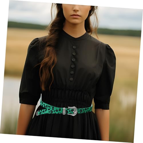 Vintage Leopard Print Wide Belt for Women Durable Western Style Waist Belt for Jeans and Dresses for Outdoor Activities and Casual Outfits Green Design 5