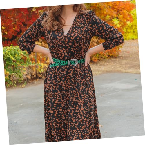 Vintage Leopard Print Wide Belt for Women Durable Western Style Waist Belt for Jeans and Dresses for Outdoor Activities and Casual Outfits Green Design 7