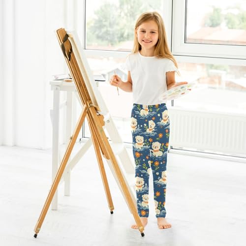 Kawaii Poodle Floral Girls Leggings Soft Stretch Workout Yoga Dance Pants for Kids Casual Tights 6