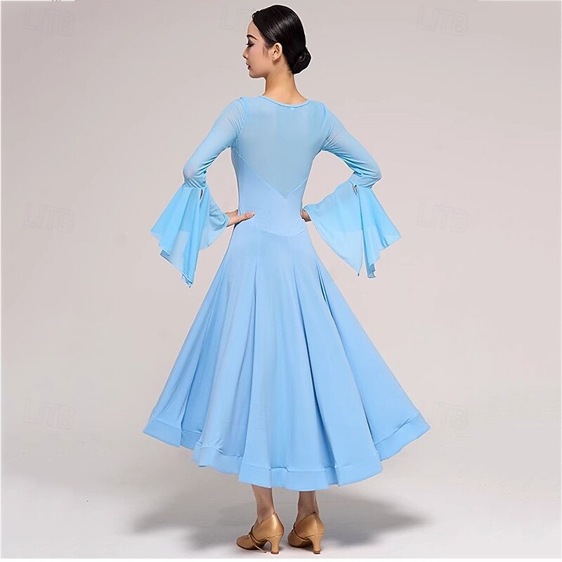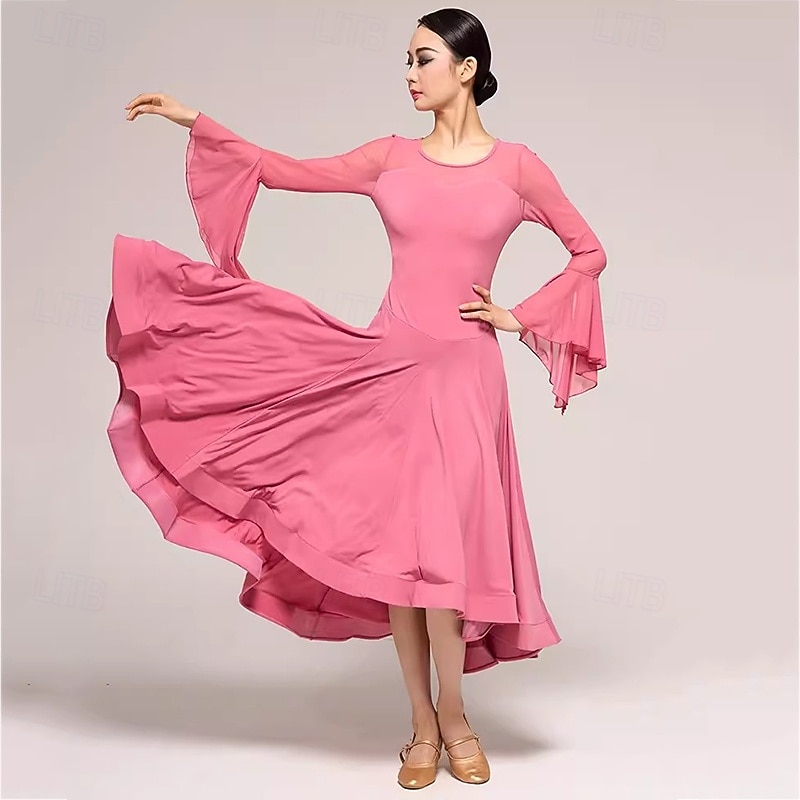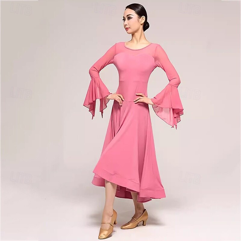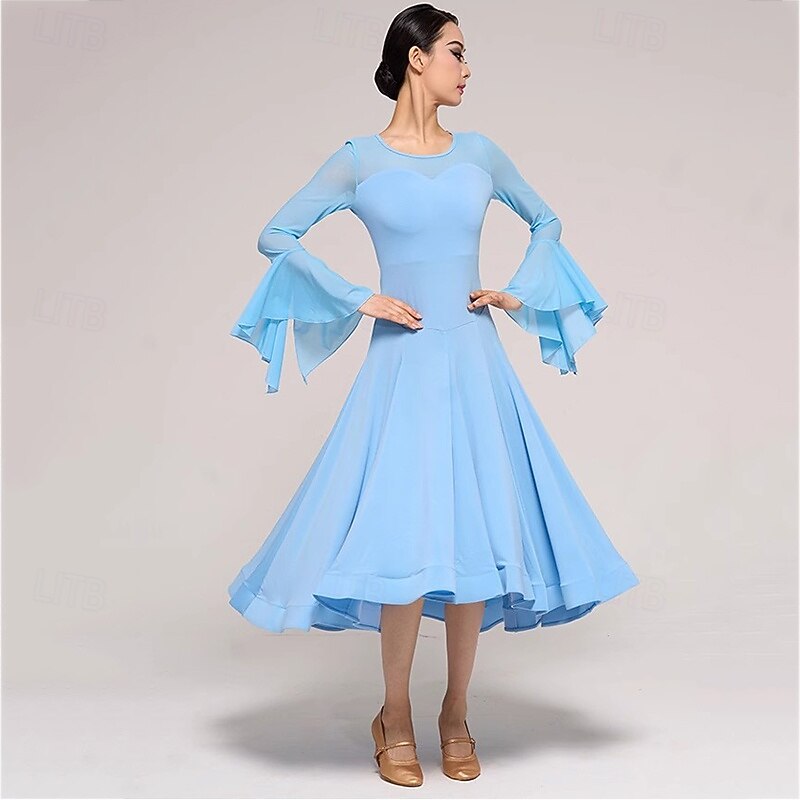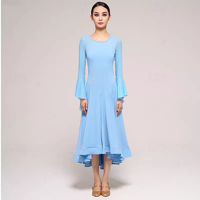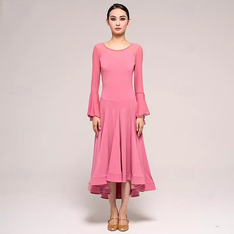 $194.99 - Ballroom Dance Dress Pure Color Splicing Women's Performance Party Long Sleeve Crystal Cotton Mesh 2025. Shop for cheap Standard  Ballroom online? Buy at lightinthebox.com on sale today!