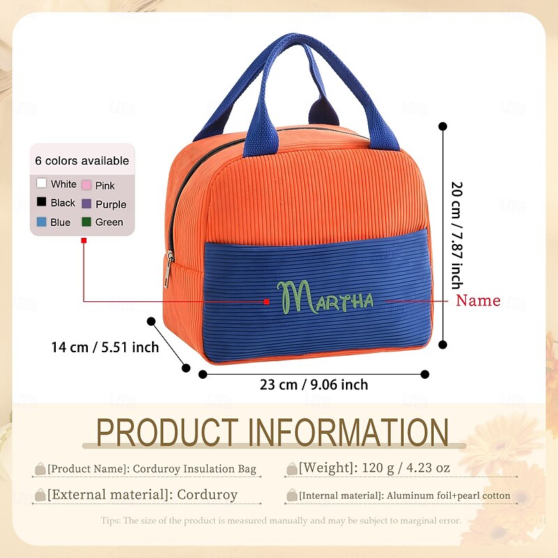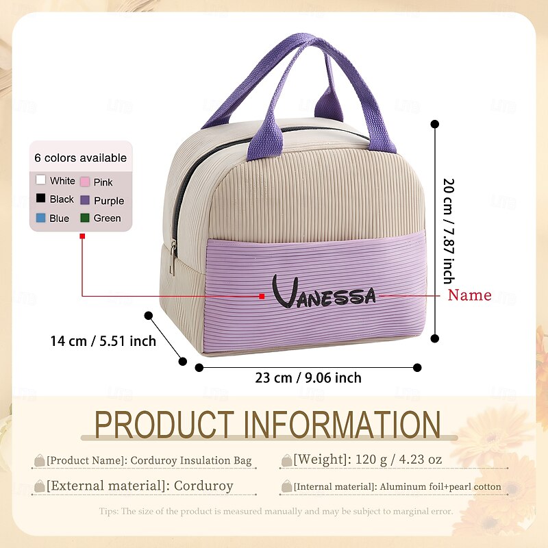 Personalized Name Lunch Bag Custom Back to School Gift, Embroidered Reusable Tote for Kids Adults, Work School Gym Picnic Outdoor Use 6