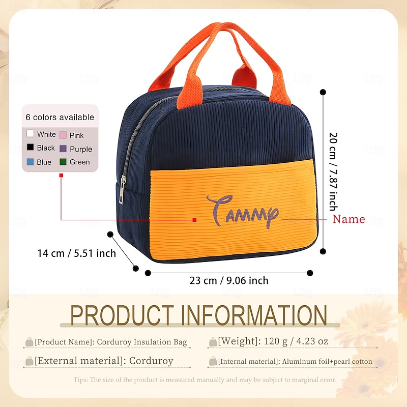 Personalized Name Lunch Bag Custom Back to School Gift, Embroidered Reusable Tote for Kids Adults, Work School Gym Picnic Outdoor Use 7