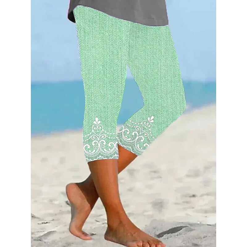 More information about Women's Leggings Vacation Vintage Fashion Capris High Waist Floral Graphic Printing Soft Breathable Stretchy Formal Outdoor Vacation Pink Blue Green Gray Summer Spring Slim Fit