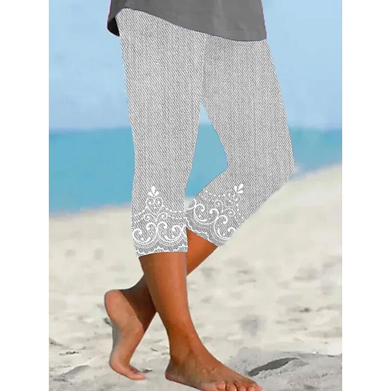 Women's Leggings Vacation Vintage Fashion Capris High Waist Floral Graphic Printing Soft Breathable Stretchy Formal Outdoor Vacation Pink Blue Green Gray Summer Spring Slim Fit 10