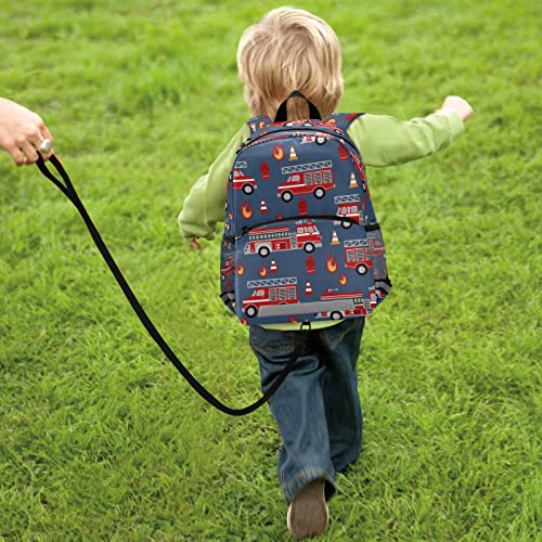HOT ! Fisyme Fire Trucks Blue Backpack Schoolbag Kids Daypack Toddler Travel School Bag Small Mini Backpacks for Kindergarten Preschool Nursery Children Boys Girls with Chest Strap
