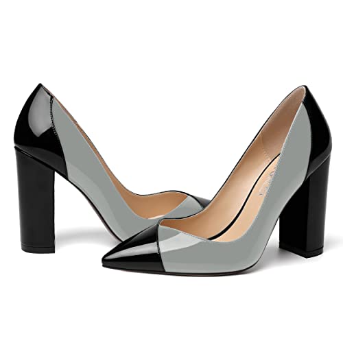 SHOWFOREST Women's Pointed Toe Patent Solid Outdoor Slip On Sexy Block High Heel Pumps Shoes 4 Inch 6