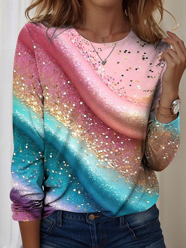 HOT ! Women's T shirt Crew Neck Long Sleeve Tunic Ombre Graphic Texture Vintage Stylish Casual Round Neck Regular Tops Daily Print Pink Blue Purple Fall